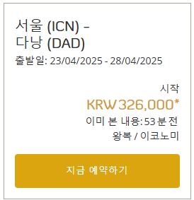 서울 다낭 / 나트랑 비즈니스 클래식 / 이코노미 라이트