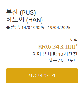 서울 / 부산 하노이 / 호치민 이코노미 라이트