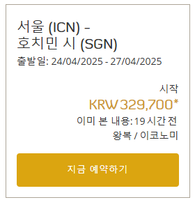 🔎 항공권 검색 베트남항공 공식 웹사이트 또는 모바일 앱에서 검색
