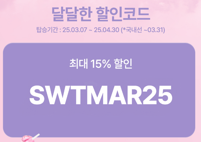 | 2025년 3월 티웨이 15% 할인! 두근두근 해외특가 (0) | 2025.03.24 |
