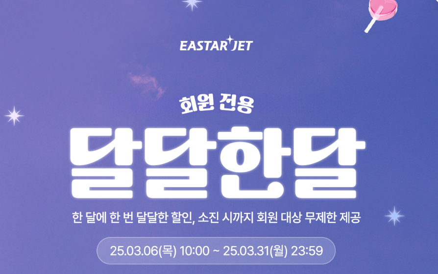 - 이스타항공 달달한달 이벤트 항공권은 변경 및 환불 시 수수료가 발생할 수 있습니다.
