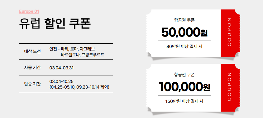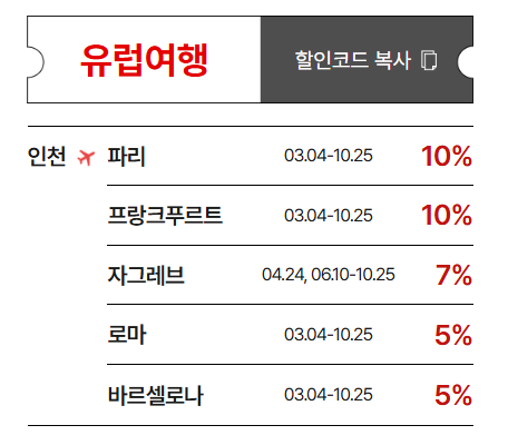 - 할인 노선: 인천 출발 유럽 5개 도시